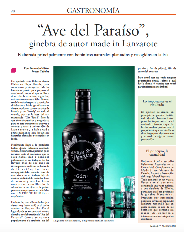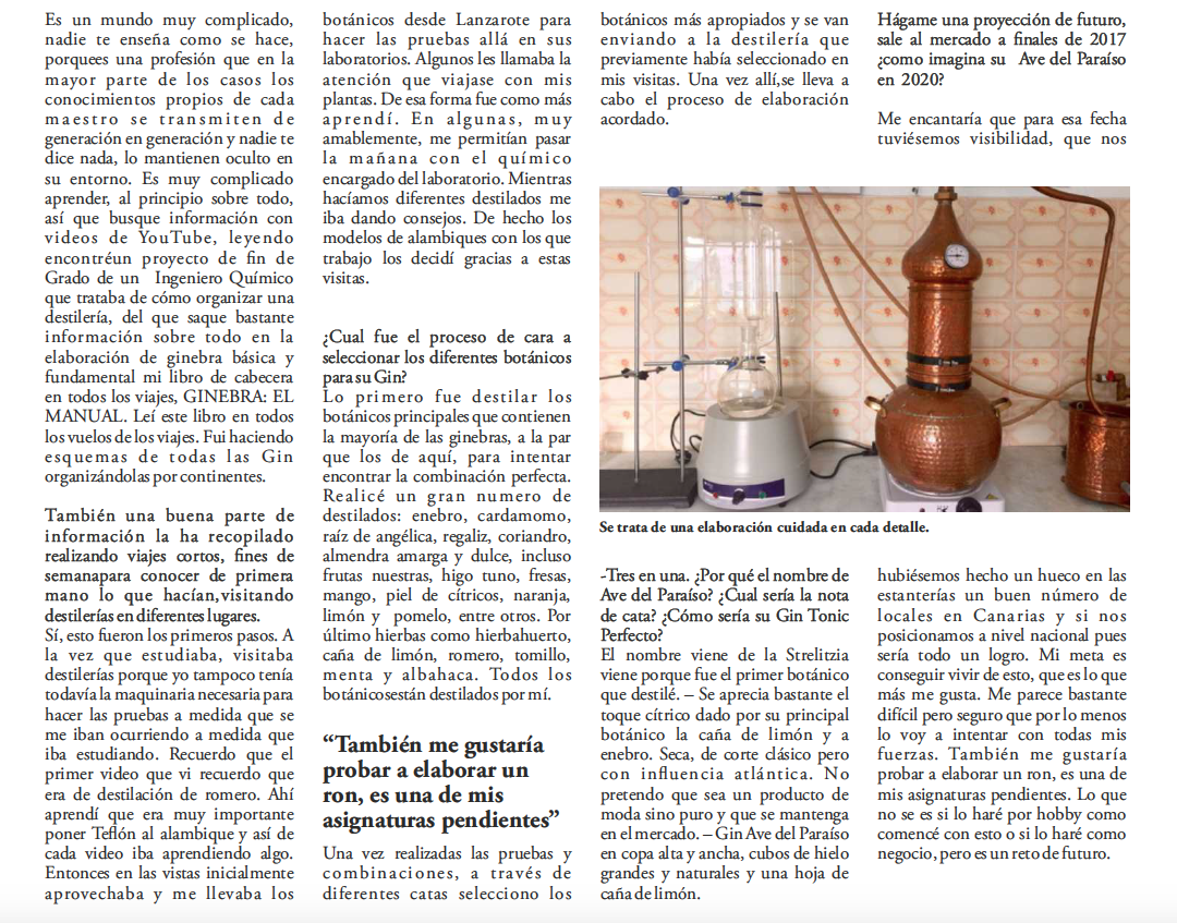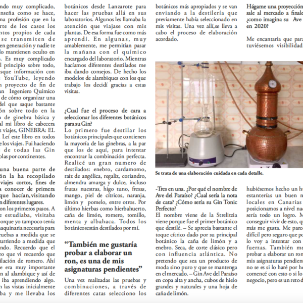 En esta galería compartimos con ustedes el resultado de nuestra charla con Fernando Núñez, quien nos entrevistó para el mencionado medio local y realizó el siguiente reportaje. Con él también visitamos nuestra destilería familiar de Uga, el lugar en el que hemos dedicado tanto tiempo a encontrar la combinación de botánicos que componen Ave del Paraíso. Aprovechamos el encuentro para contar un poco más sobre el origen de nuestro gin de autor y algunos de los futuros objetivos que nos encantaría alcanzar.